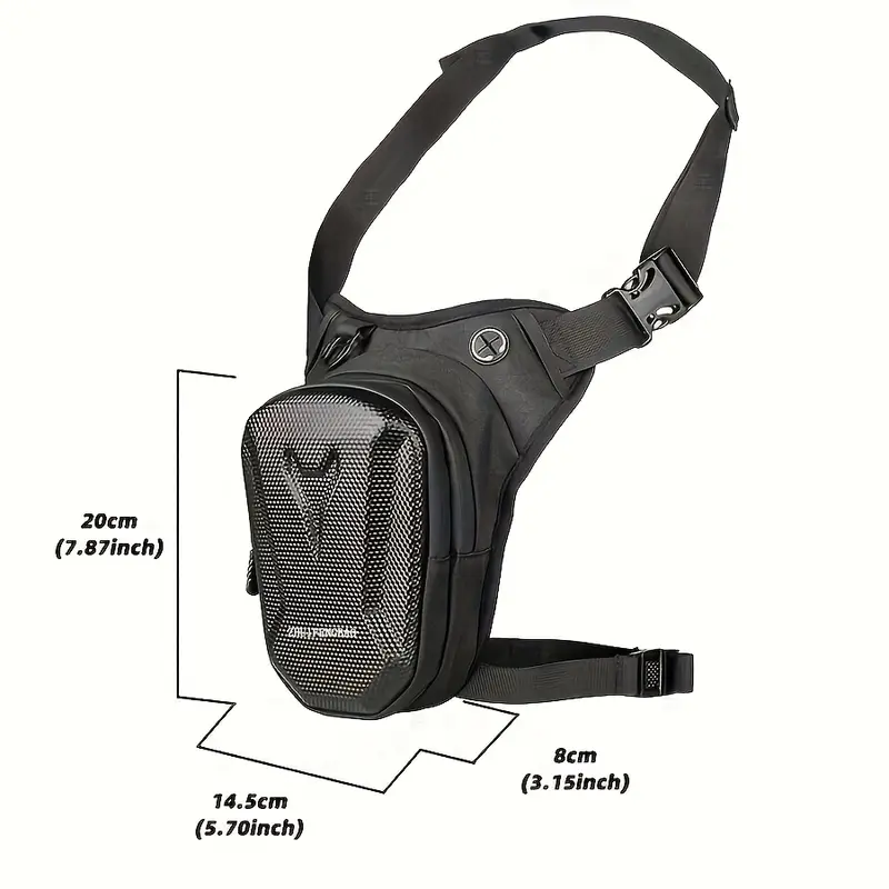 Viaja de moto com mais segurança, conforto e praticidade com esta bolsa de perna ergonómica para motociclistas, desenvolvida especialmente para quem valoriza organização e liberdade de movimentos. Fabricada em EVA de alta resistência e poliéster durável, esta bolsa conta com fecho de correr robusto, alças ajustáveis e um design moderno e aerodinâmico.